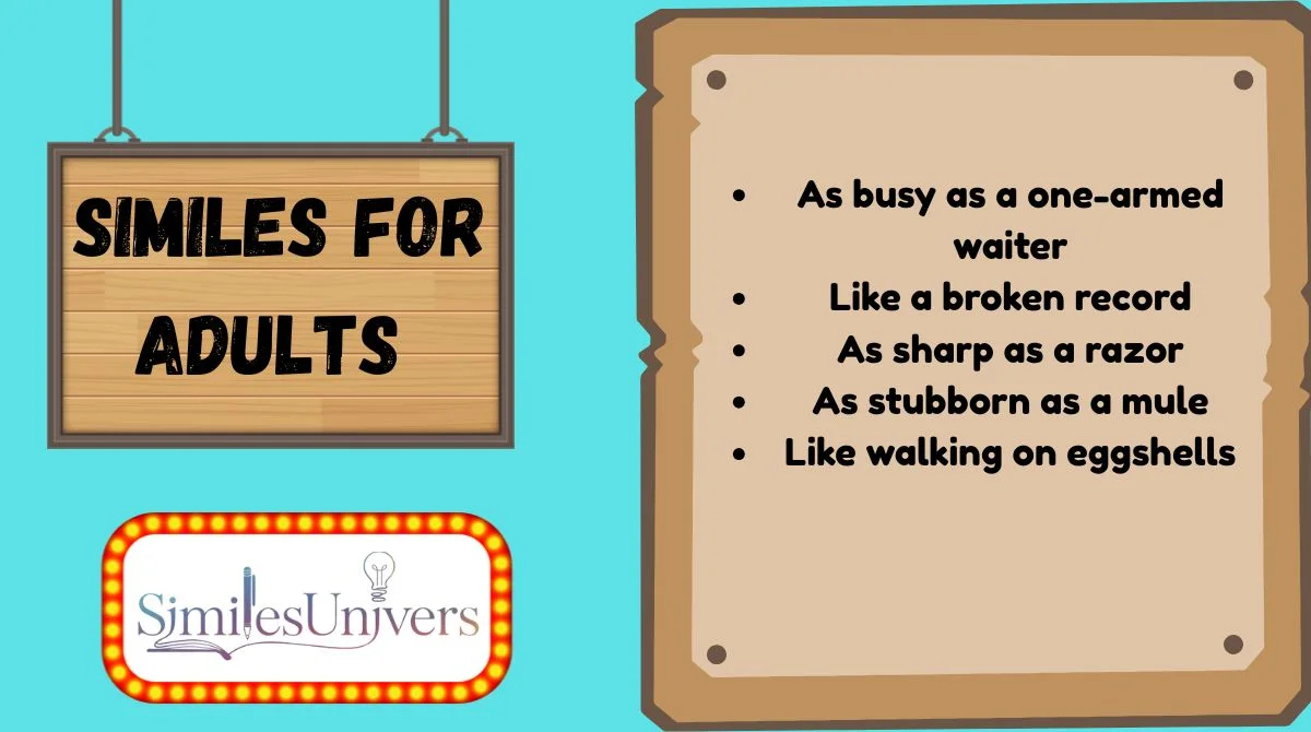 Similes for adults compare daily adult life, emotions, and responsibilities using “like” or “as.”