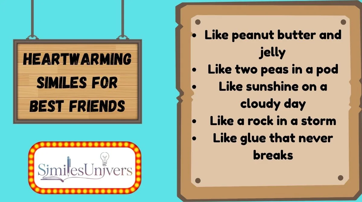 Best friends deserve more than simple words. Similes help you paint their value with color and light. Whether funny like peanut butter and jelly or deep like roots of the same tree, the right comparison makes your message unforgettable.